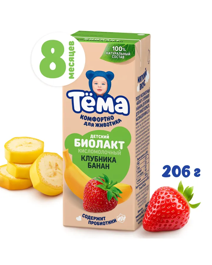 Биолакт Тёма Клубника-банан 3.0% 206г с 8месяцев