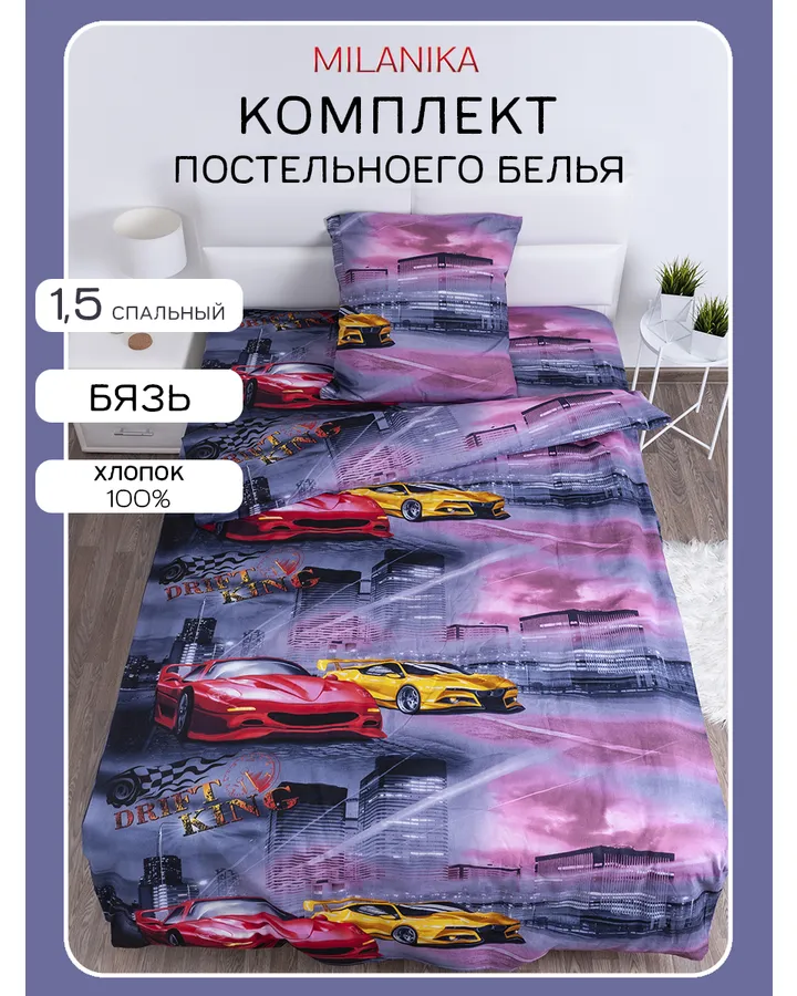 Комплект постельного белья MILANIKA Грузовичок полутораспальный 3 предм.Отличный товар