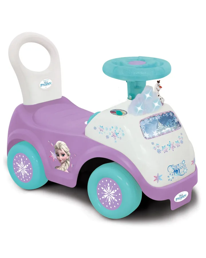 Красивая , маленькая , лёгкая , вперёд назад ездит легко, в точности как на фото , под рулём шестерёнки крутятся, рычаг переключения передач включает звук двигателя, есть кнопки с музыкой и звуками зажигания и бибиканья, спереди на капоте мигают огоньки. Звуки глуховатые , не маневренная, поворачивает только вручную . Мне кажется классной , если улучшить то идеальная машинка каталка .