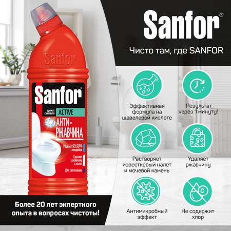 Средство чистящее для унитаза Sanfor гель против сложных загрязнений 1 л 2 шт