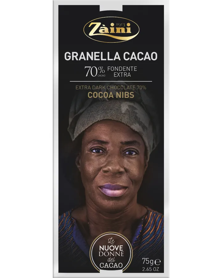 Горький шоколад Zaini 70% с кусочками какао-бобов