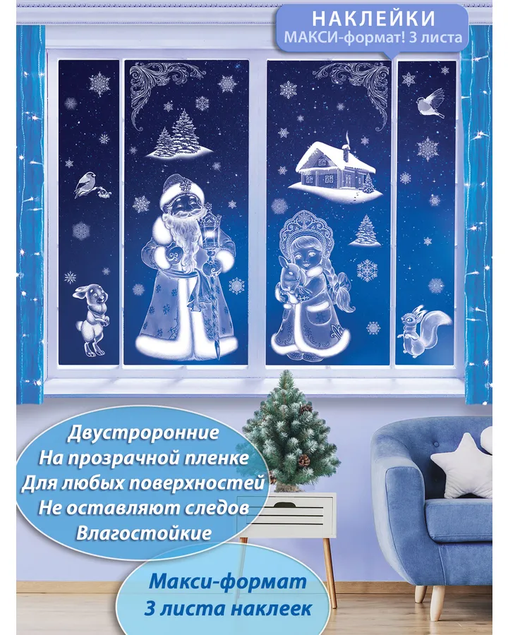 Набор украшений Открытая планета на скотче Снегири и снежинки 9 элементов