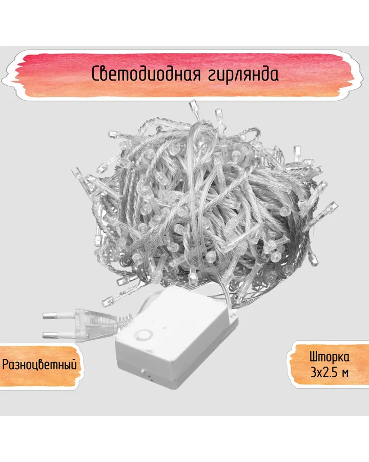 Светодиодная гирлянда Seichi Шторка разноцветная 3х2.5 м