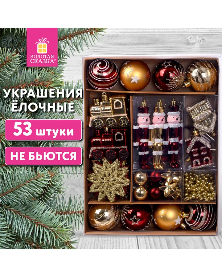 Елочные игрушки шары Золотая сказка набор 50 украшенийЗамечательный набор! Шары яркие и качественные. Очень красиво смотрятся на ёлке.