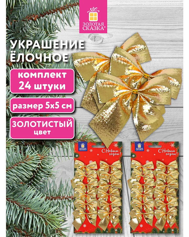 Елочные игрушки Золотая сказка новогоднее украшение набор 24 штуки Бантики
