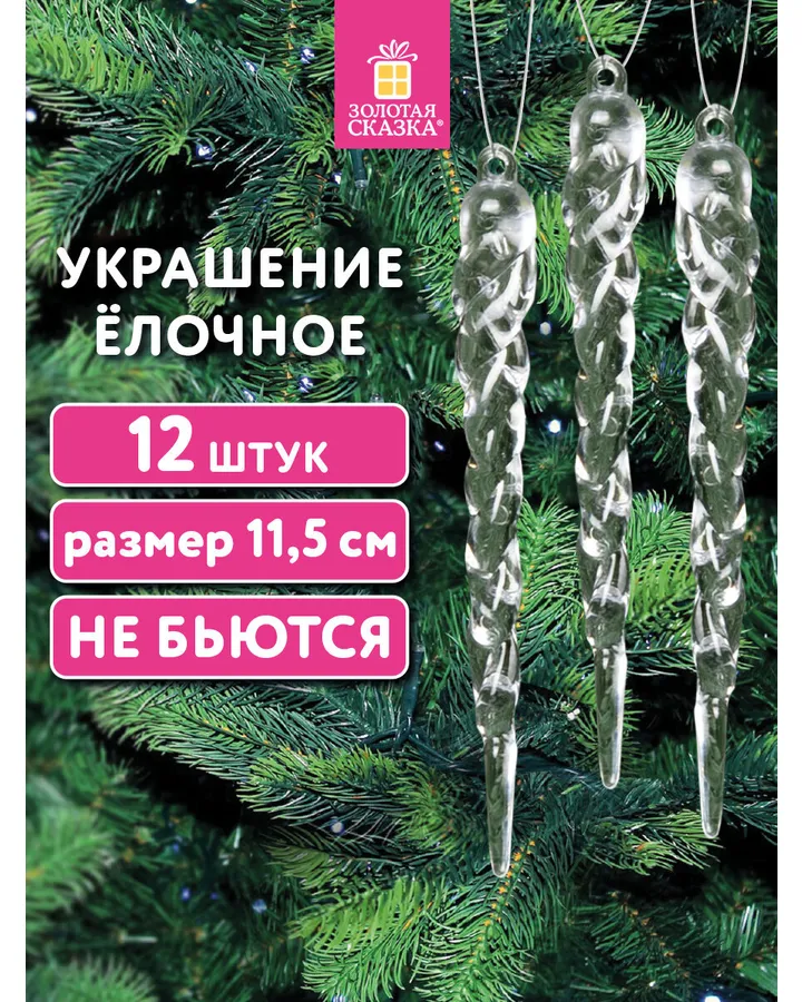 Елочные игрушки Золотая сказка новогоднее украшение набор 12 штук Сосульки