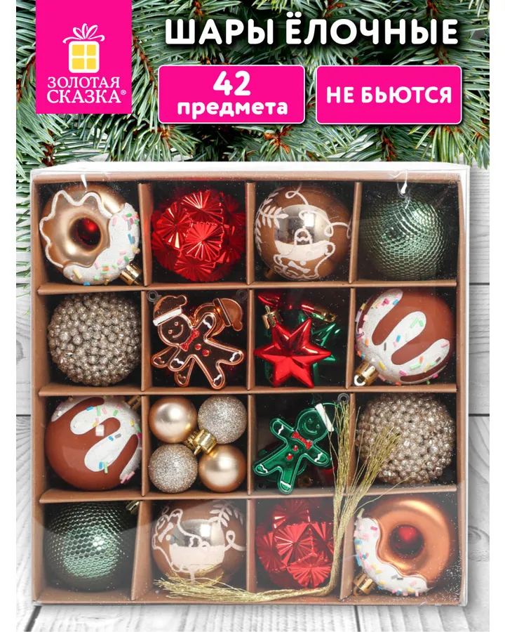 Елочные игрушки шары Золотая сказка набор 42 украшения