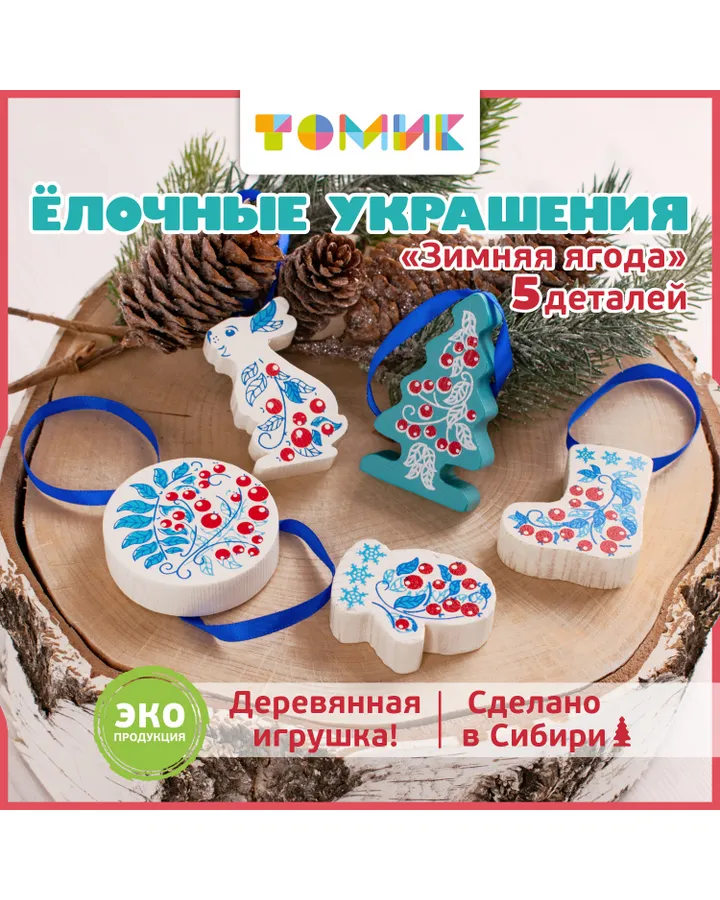 Набор ёлочных игрушек Томик Зимняя ягода 5 деталей