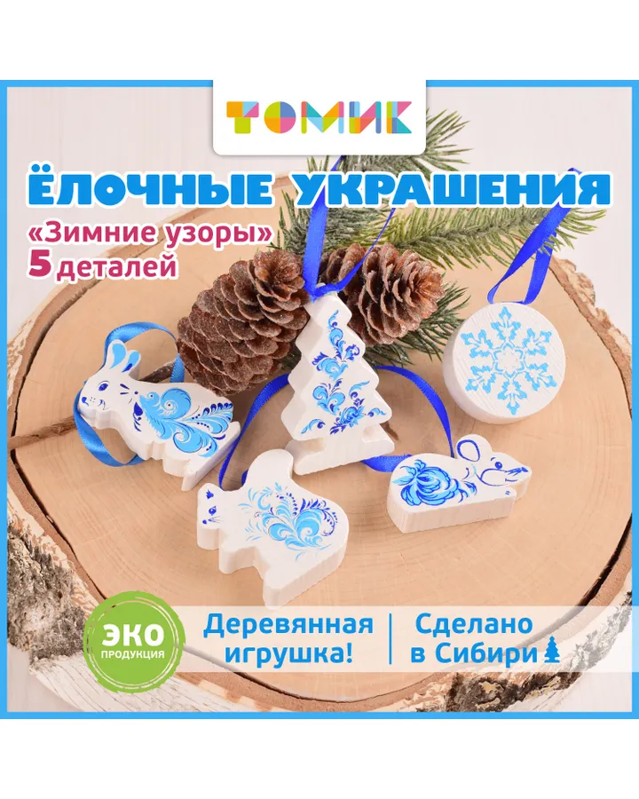 Набор ёлочных игрушек Томик Зимние узоры 5 деталей