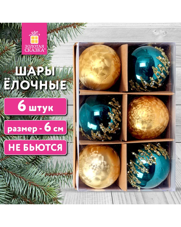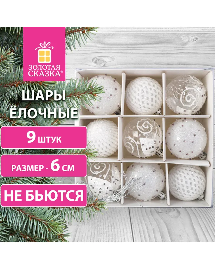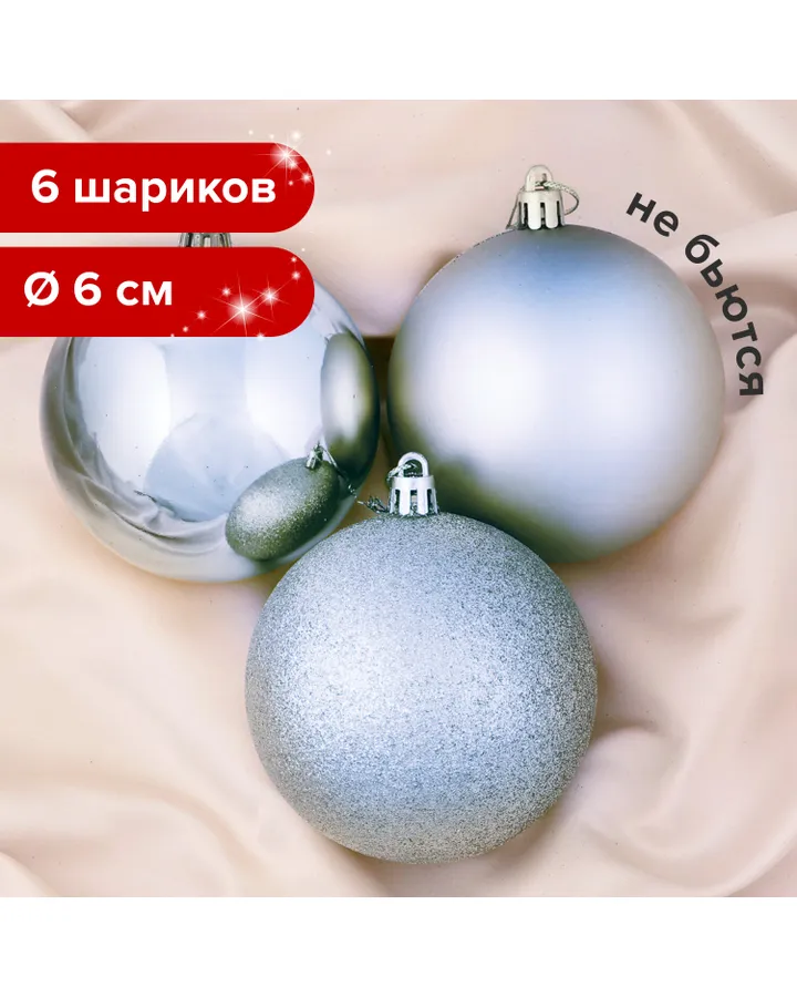 5Шары елочные Золотая сказка с узором пластик 8 см Серебристые 3 глянцевых 3 матовыхОтличные и красивые шары!