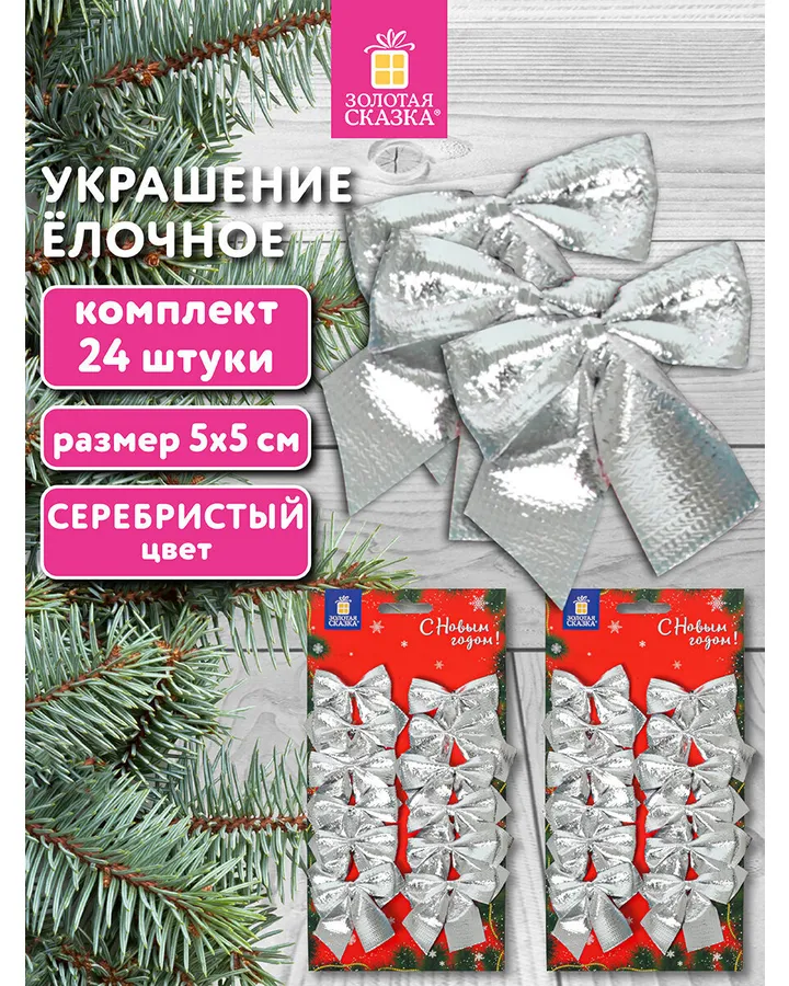 Елочные игрушки Золотая сказка новогоднее украшение набор 24 штуки Бантики