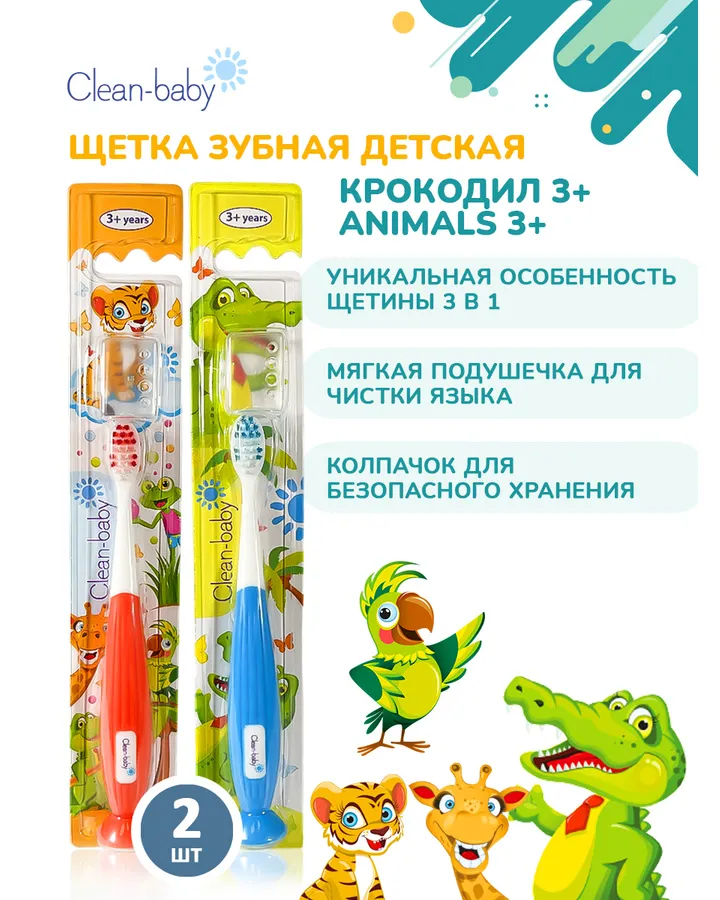 Зубная щетка классическая Clean-baby от 3 лет 2 шт.