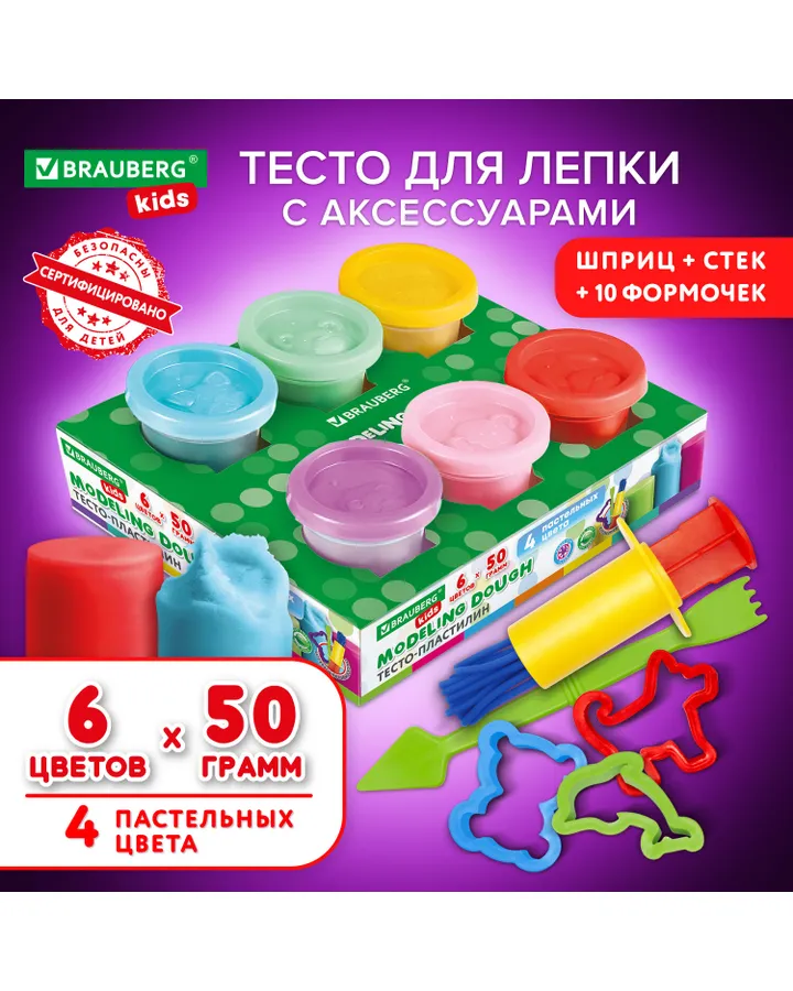 Тесто-пластилин Brauberg 4 цв.Хорошее тесто-пластилин. Будем брать еще