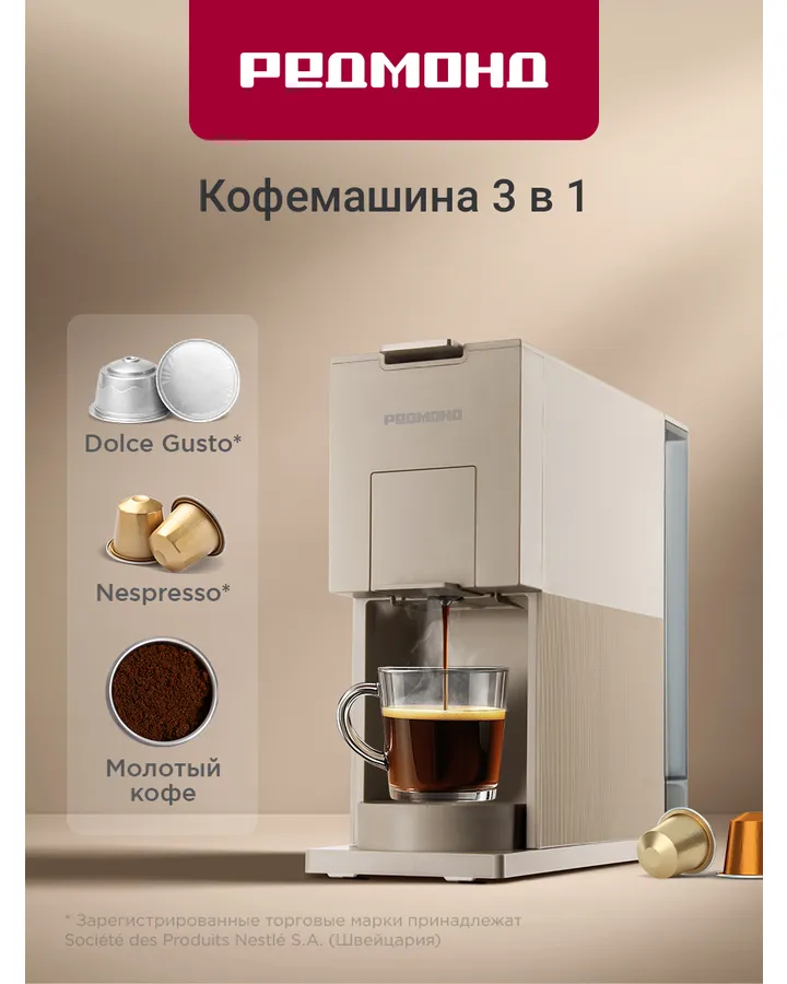 5Кофеварка REDMOND RCM-1512Супер! Работает отлично, простая в эксплуатации, хорошо взбивается молоко, плотная пенка