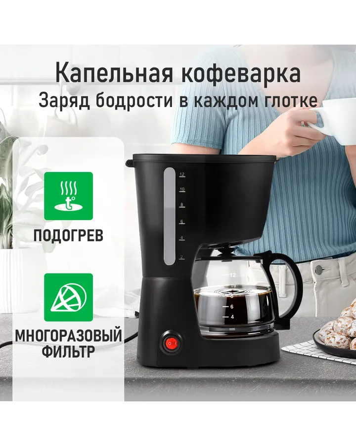 Кофеварка MARTA MT-2118 черный жемчуг