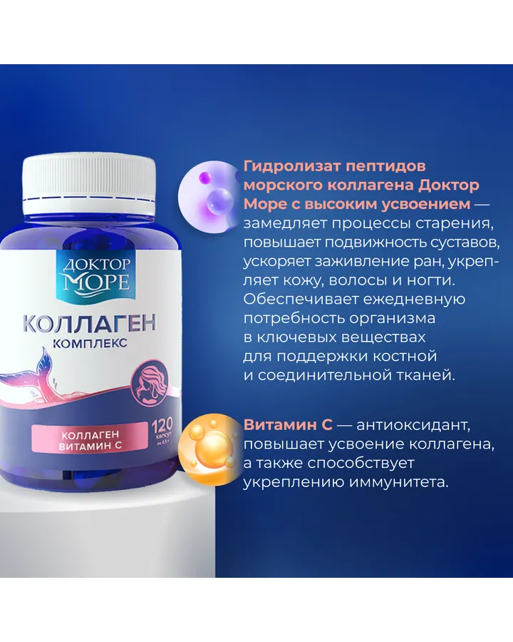 5Коллаген комплекс для красоты Доктор Море с гиалуроновой кислотой и витамином С 120 капсулЕсть эффект