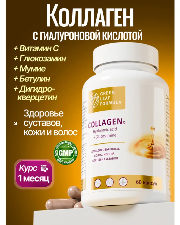 Морской коллаген пептидный с витамином С Green Leaf Formula для связок и суставов витамины для кожи волос и ногтейменьше ощущается нагрузка на колени