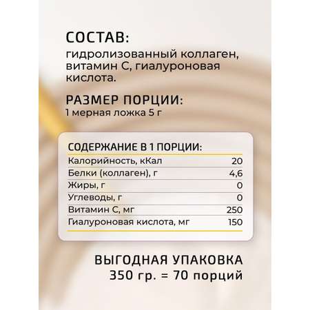 Пептидный коллаген LeafToGo с гиалуроновой кислотой и витамином С 180 гр