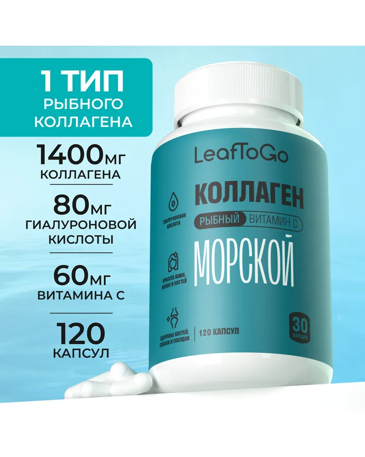 5Морской пептидный коллаген LeafToGo с Витамином С 120 капсулПринимаю утром - не забываю