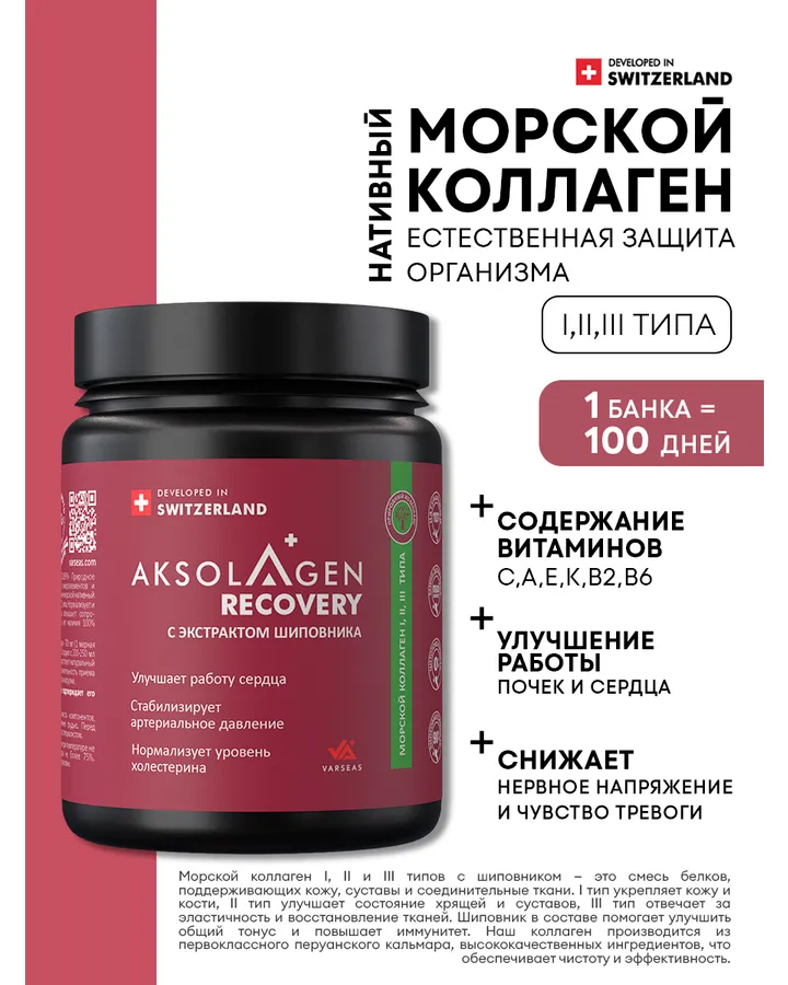 5Морской коллаген 1 2 3 типа AKSOLAGEN с экстрактом шиповником