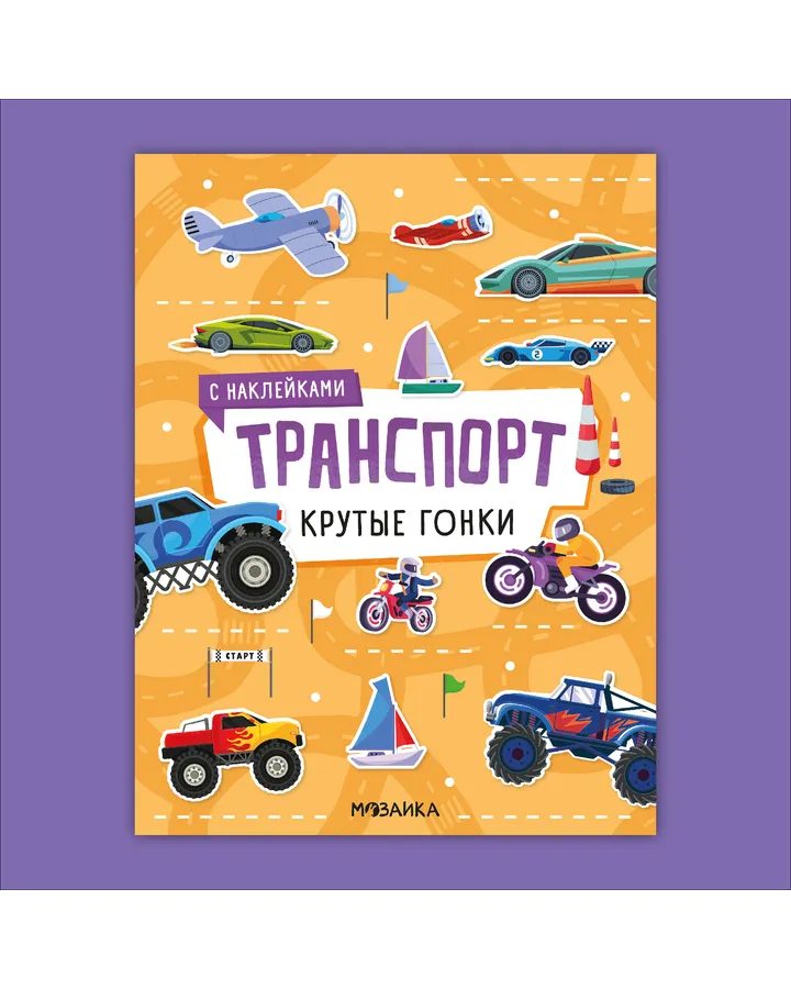 Книга МОЗАИКА kids Транспорт с наклейками Крутые гонки
