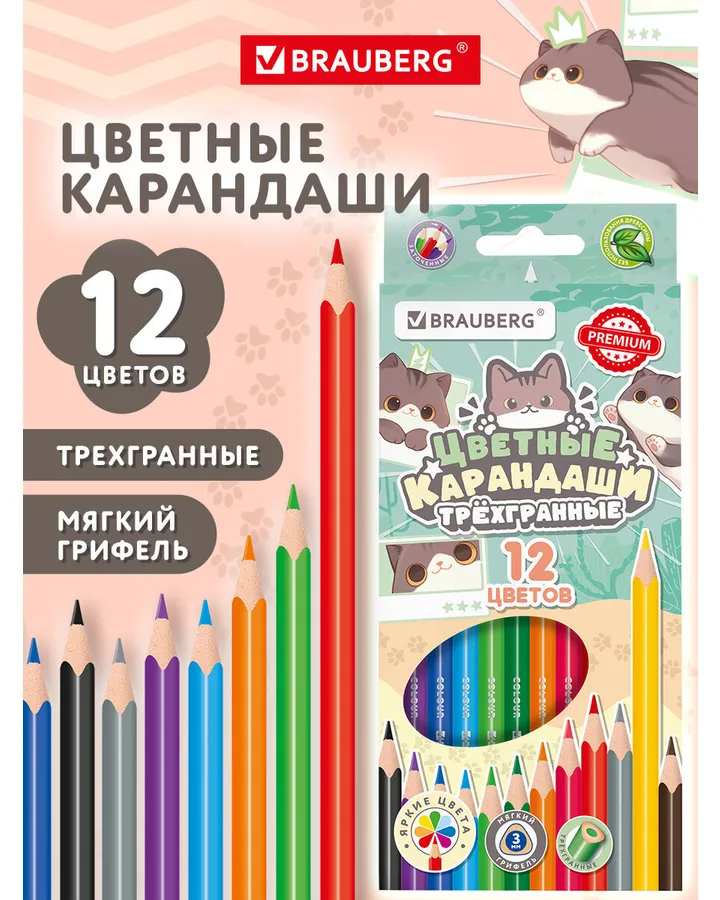 Карандаши цветные Brauberg 12 шт.