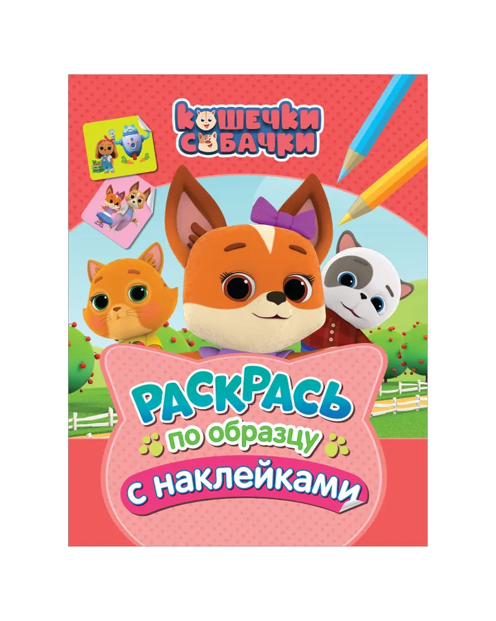 Альбом Росмэн Раскрась по образцу с наклейками розовая Кошечки-собачки