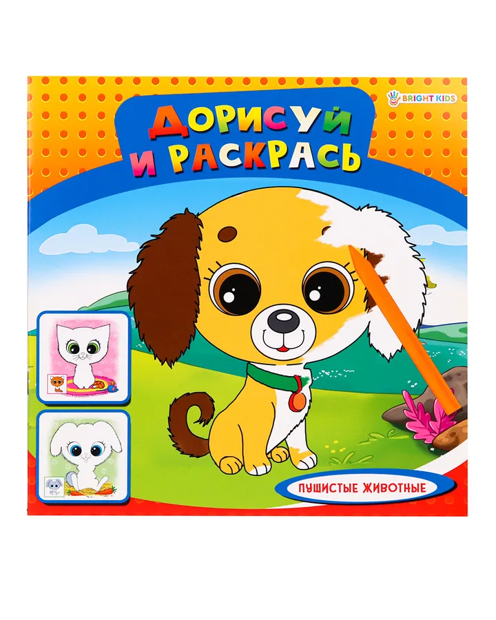 Дорисуй и раскрась Bright Kids Пушистые животные 8 листов размер 215х215 мм
