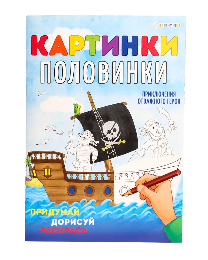 Раскраска Bright Kids Картинки-половинки Приключения отважного героя А4 8 листов