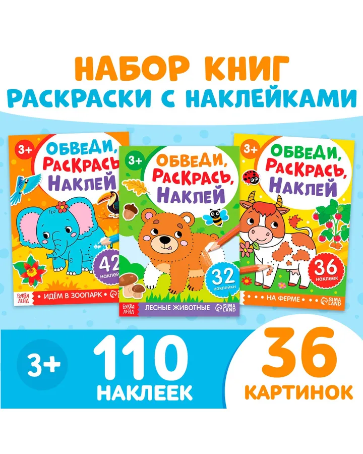 Набор книг Буква-ленд «Обведи, раскрась, наклей», 3 шт.