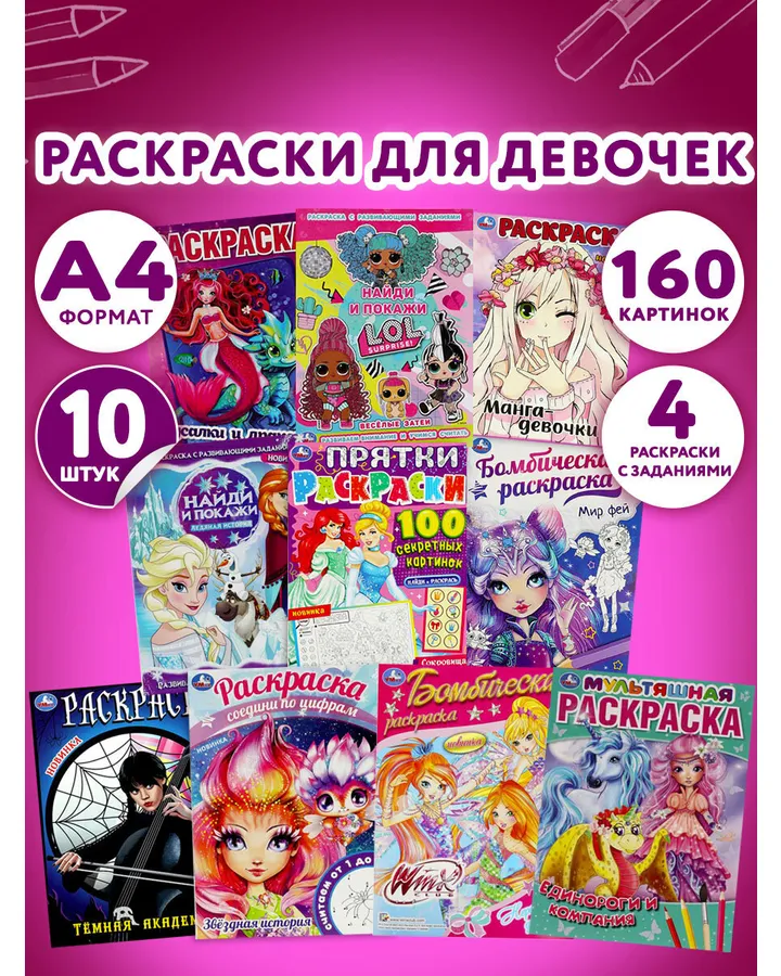 Раскраски УМка для девочек малышей набор книг 10 шт А4