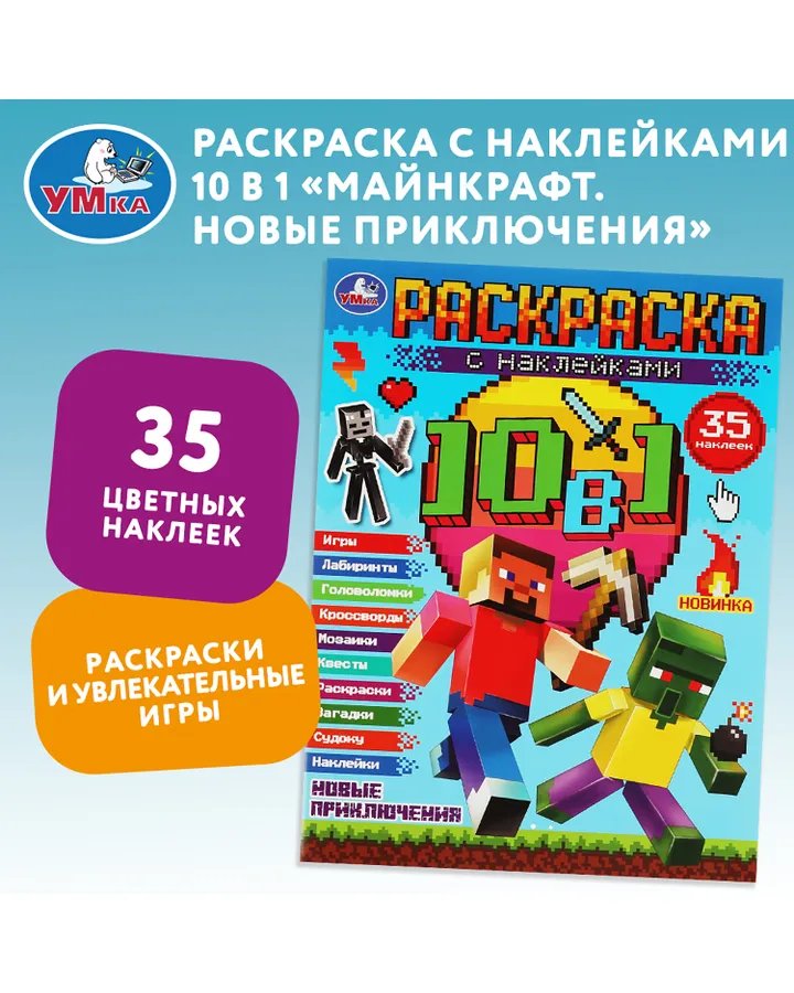 Раскраска Умкa 10 в 1 с наклейками Майнкрафт Новые приключения
