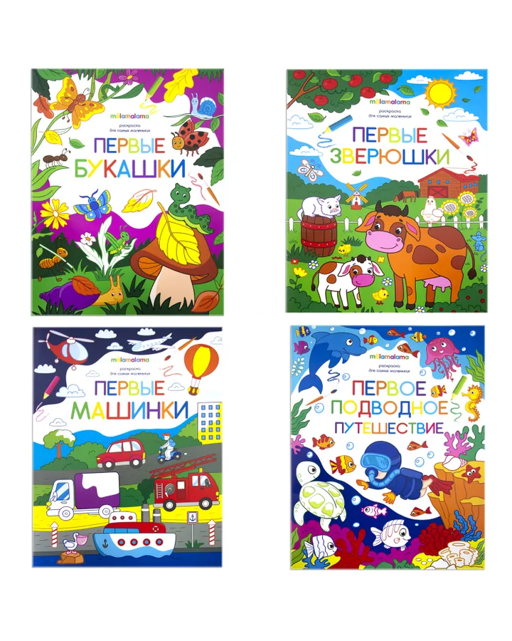 5Набор Раскраски-находилки 4 шт Malamalama Весёлая ферма Забавные динозавры Нескучный зоопарк Чудесные денькиДетали все интересные создаем большие картины, ребенок рад