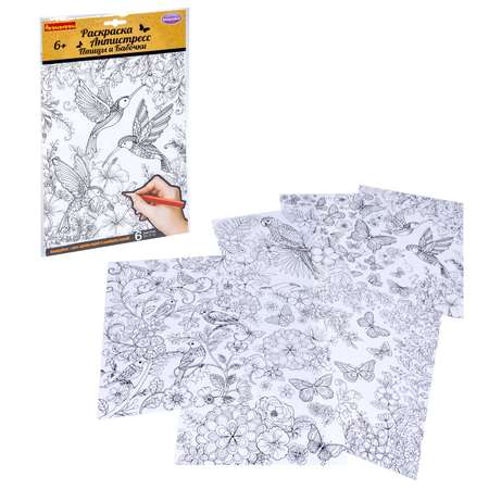 Набор раскрасок-антистресс BONDIBON Птицы и Бабочки 6 листов