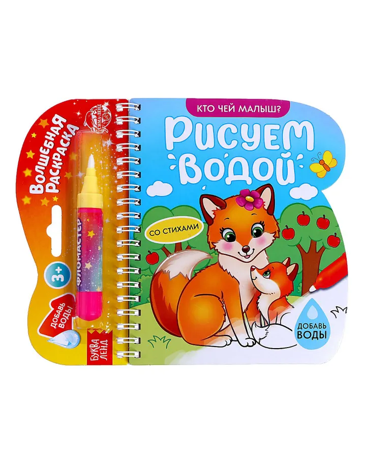 Книжка-раскраска Буква-ленд многоразовая «Рисуем водой Кто чей малыш?» 10 стр