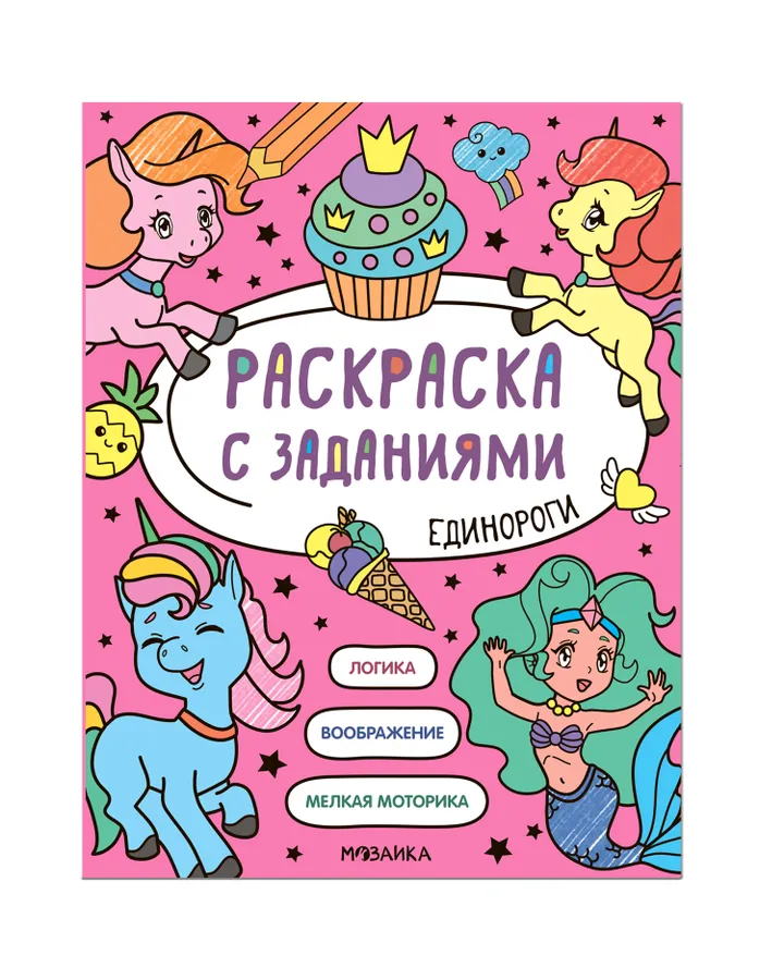 Книга МОЗАИКА kids Раскраска с заданиями Единороги
