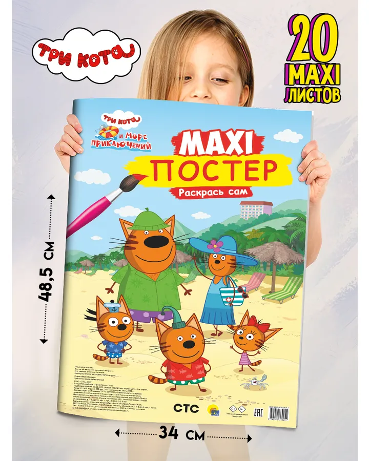 Раскраска Проф-Пресс Макси-постер Три кота Лето