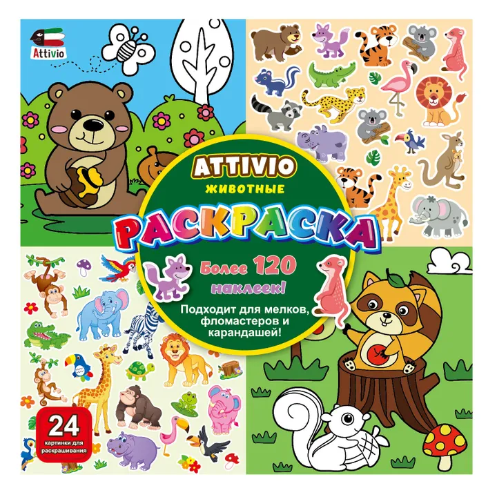 Раскраска Attivio с сухими красками Животные А4 8 листов