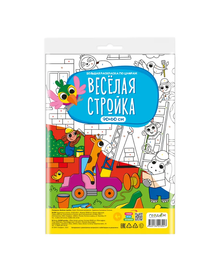 Книга ГЕОДОМ Большая раскраска по цифрам Веселая стройка