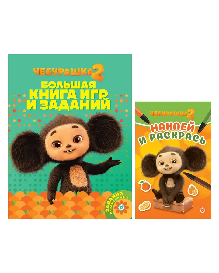 Комплект Чебурашка Большая книга игр + Раскраска с наклейками
