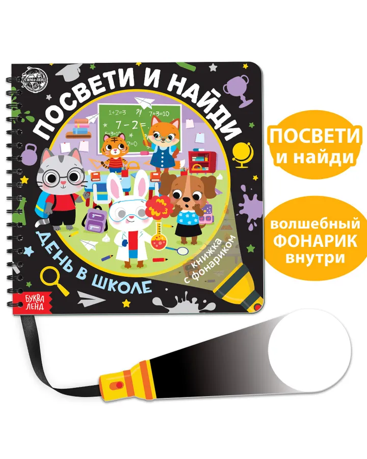 Книжка Буква-ленд с фонариком «Посвети и найди День в школе»