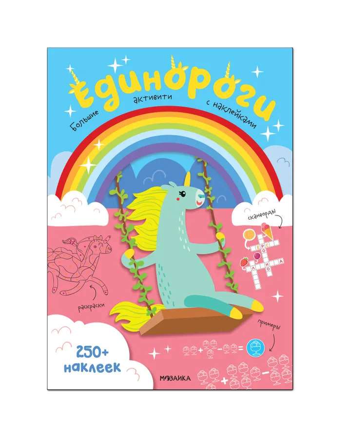 Книга МОЗАИКА kids Большие активити 250 наклеек Единороги
