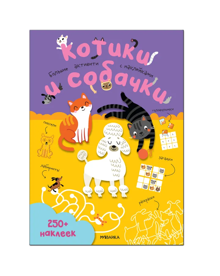 Книга МОЗАИКА kids Большие активити 250 наклеек Котики и собачки