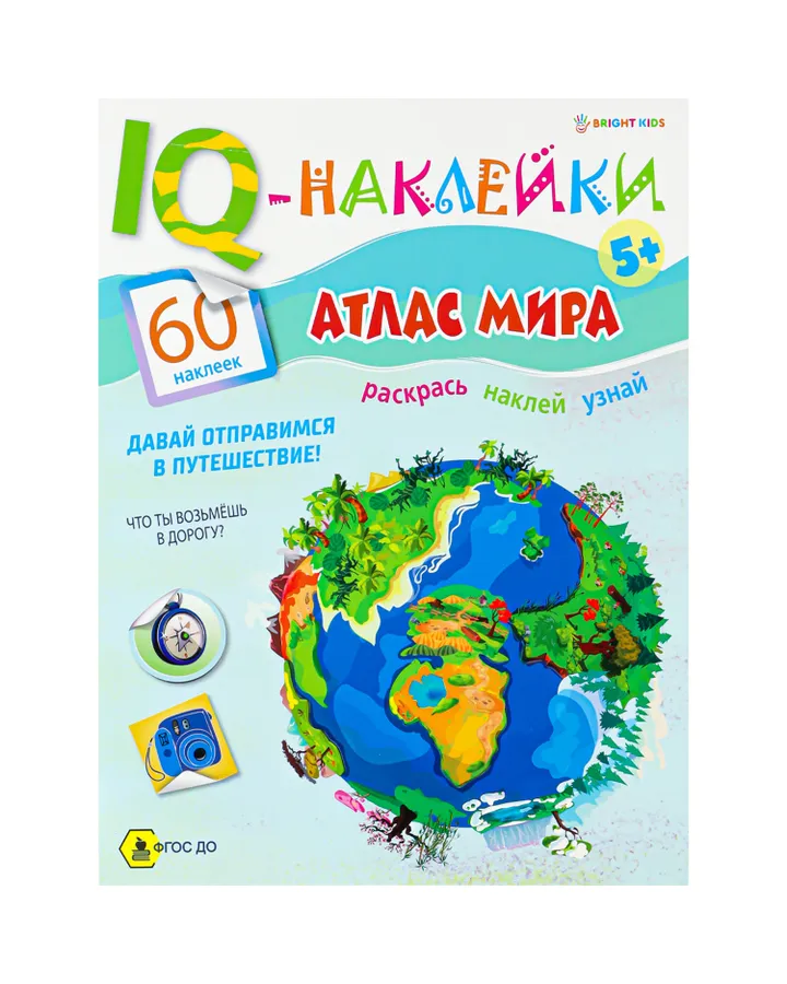 Развивающее пособие Bright Kids IQ-Наклейки Атлас мира А4 8 листов 198х260 мм