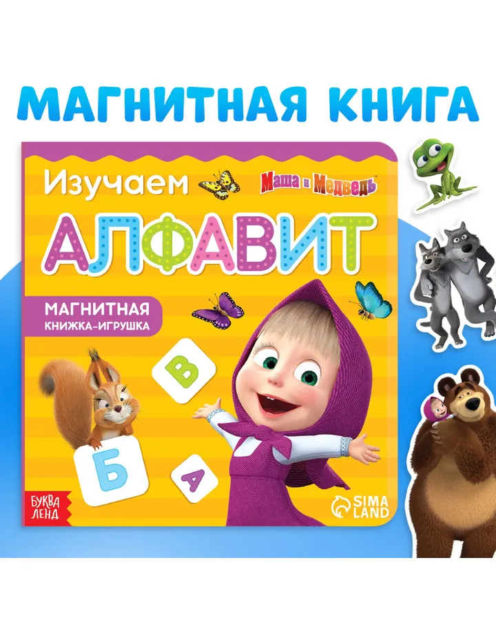5Магнитная книга Маша и Медведь с заданиями «Алфавит» 8 стр. 47 магнитовПрекрасная книжка и магниты поиятные яркие !!