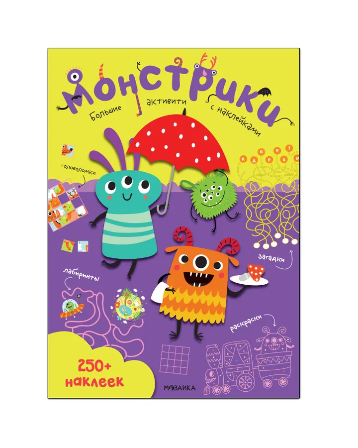 Книга МОЗАИКА kids Большие активити 250наклеек Монстрики