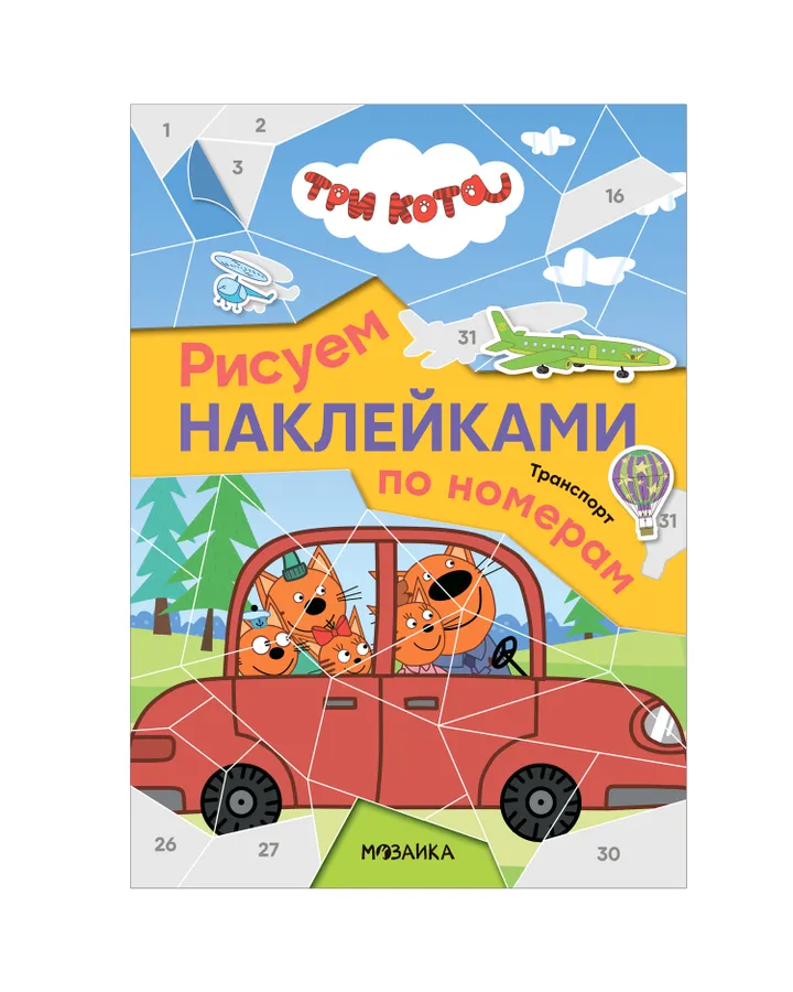 Книга Три кота Рисуем наклейками по номерам Транспорт