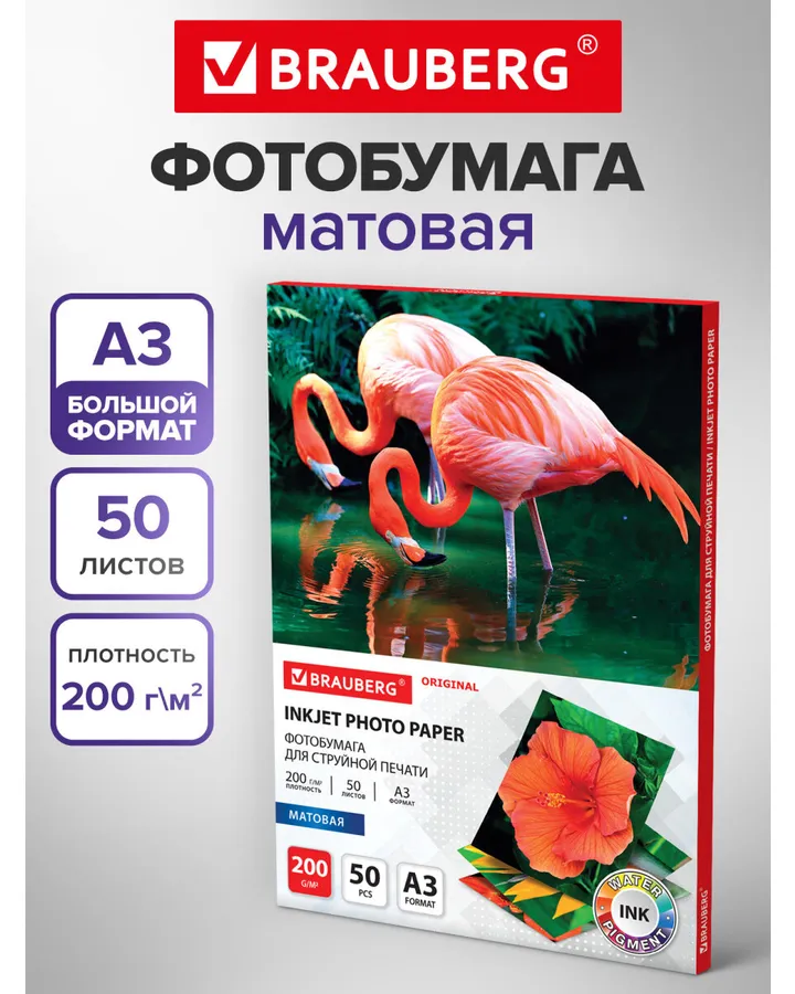 Фотобумага Brauberg матовая для печати фото большого формата 50 листов А3