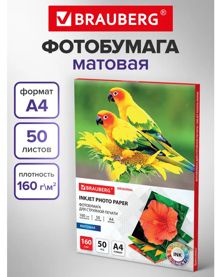 Фотобумага Brauberg матовая для печати фото 50 листов А4