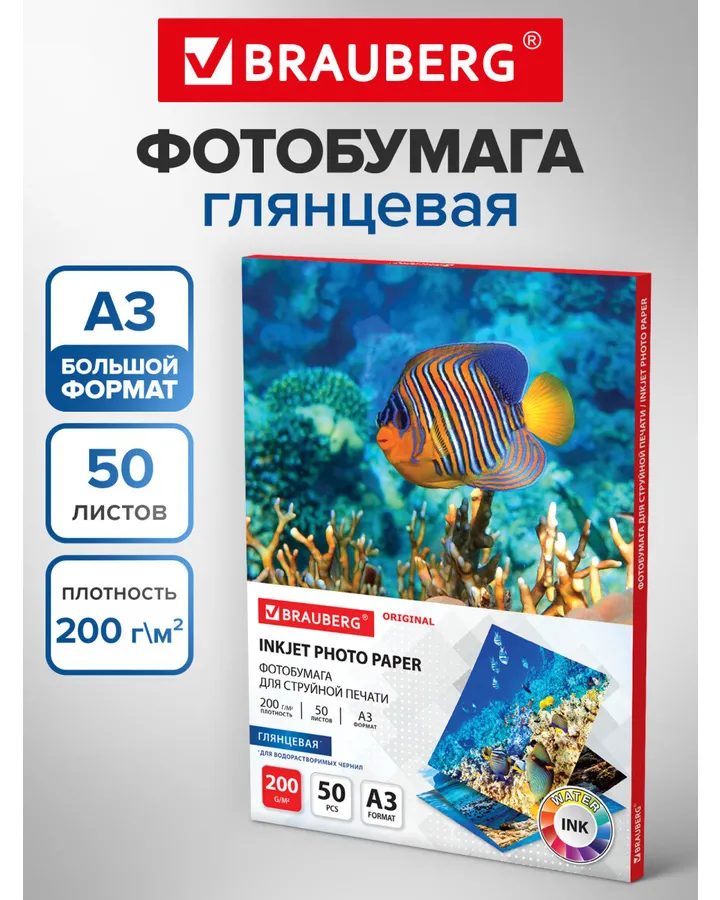 Фотобумага Brauberg глянцевая для печати фото большого формата 50 листов А3